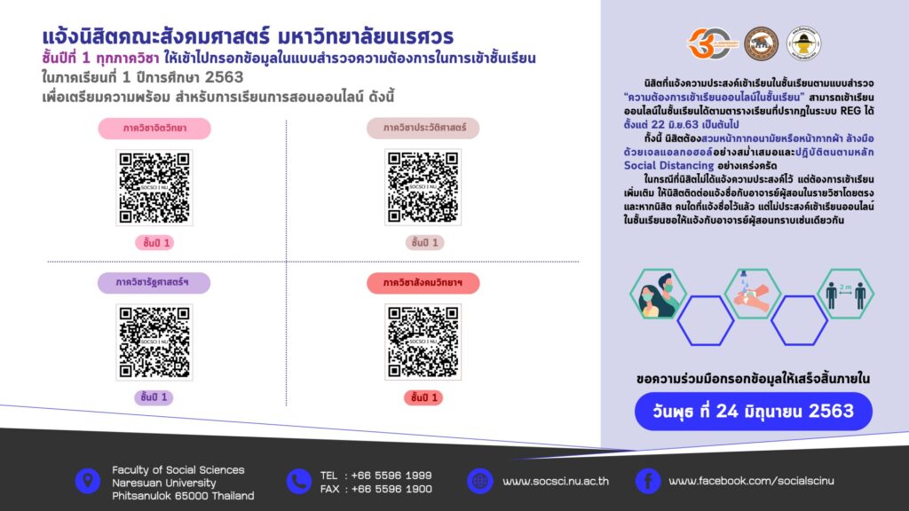 แจ้งนิสิตคณะสังคมศาสตร์ มหาวิทยาลัยนเรศวร