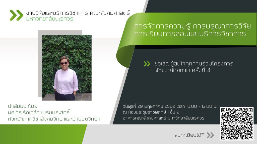 งานวิจัยและบริการวิชาการ คณะสังคมศาสตร์ มหาวิทยาลัยนเรศวร