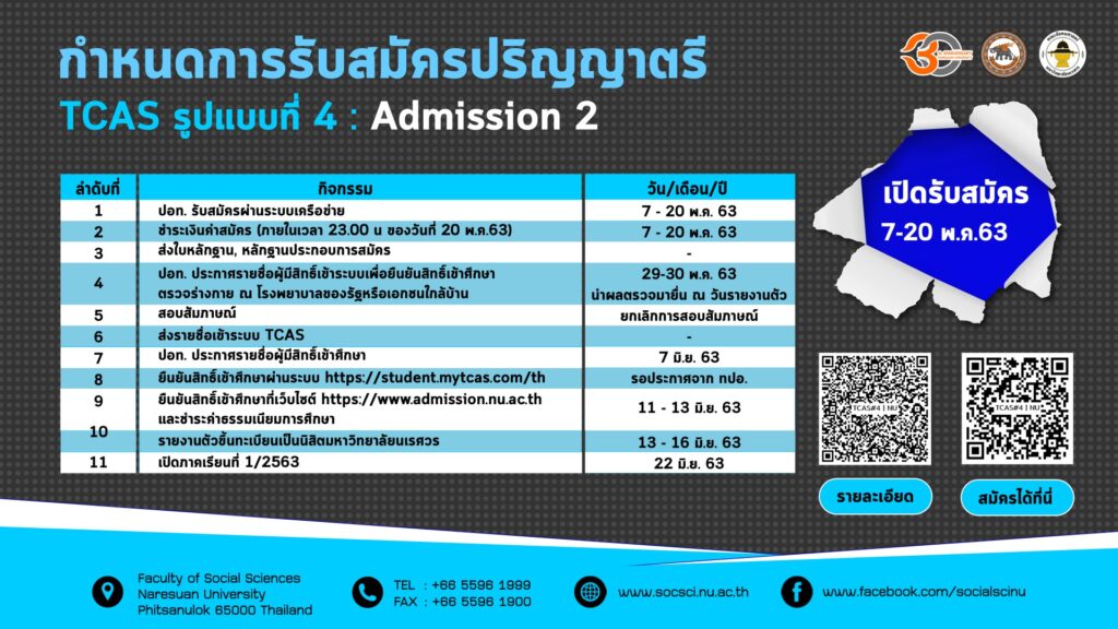 กำหนดการรับสมัครปริญญาตรี TCAS รูปแบบที่ 4 : Admission 2 กำหนดการรับสมัครปริญญาตรี TCAS รูปแบบที่ 4 : Admission 2