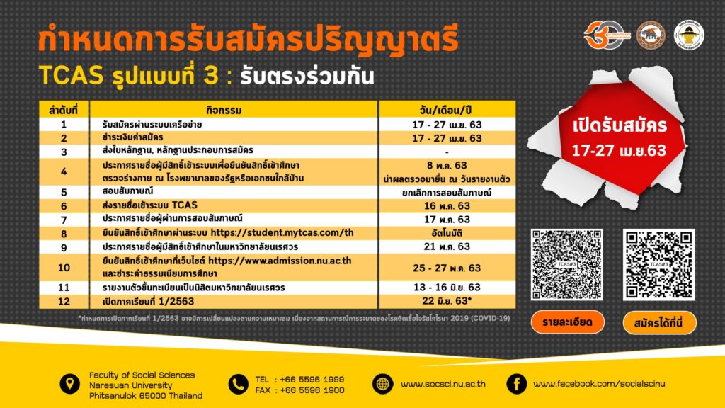 กำหนดการรับสมัครปริญญาตรี TCAS รูปแบบที่ 3 : รับตรงร่วมกัน (TCAS#3)