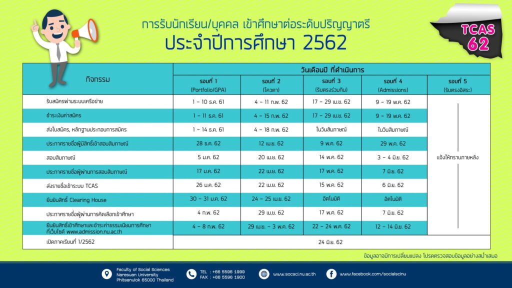 กำหนดการรับสมัครเข้าศึกษาต่อระดับปริญญาตรี TCAS 62