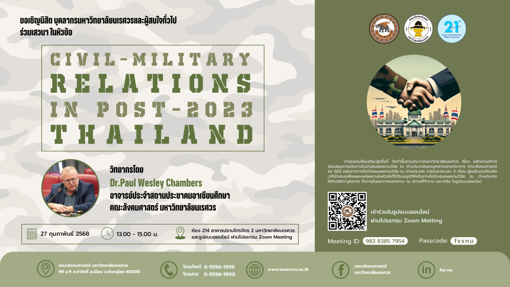 ขอเชิญนิสิต บุคลากรมหาวิทยาลัยนเรศวร และผู้สนใจทั่วไป