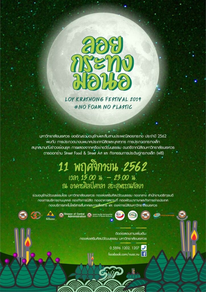 ขอเชิญร่วมงานลอยกระทงมหาวิทยาลัยนเรศวร ประจำปี 2562