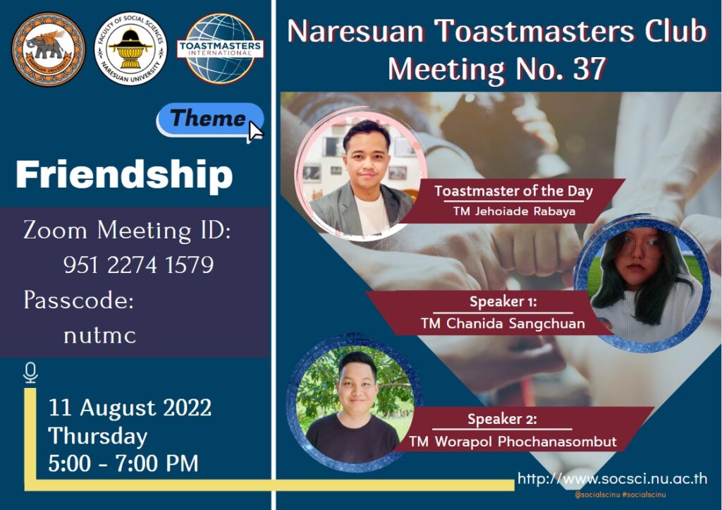 คณะสังคมศาสตร์ มหาวิทยาลัยนเรศวร ขอเชิญผู้สนใจทุกท่านร่วมโครงการ NU Toastmasters Club ครั้งที่ 37
