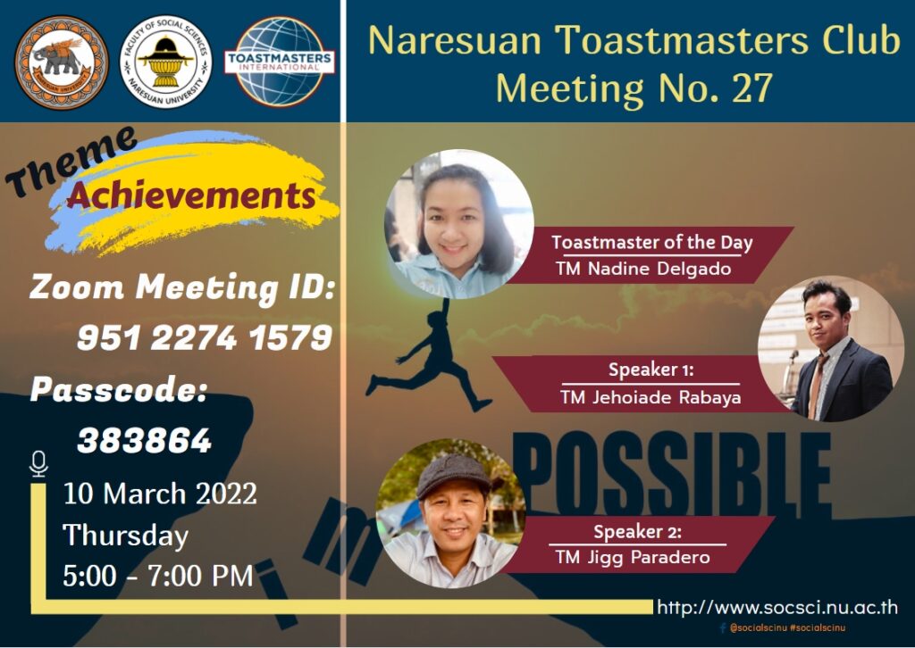 Topic: Naresuan Toastmasters Club Meeting No.27
