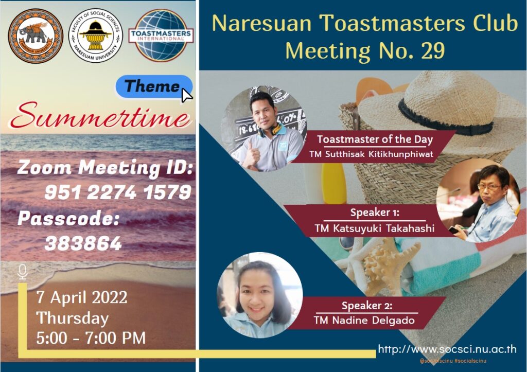 Topic: Naresuan Toastmasters Club Meeting No.29