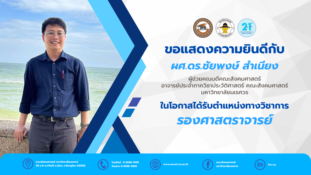 ขอแสดงความยินดีกับ “ผู้ช่วยศาสตราจารย์ ดร.ชัยพงษ์ สำเนียง” ในโอกาสได้รับตำแหน่งทางวิชาการ “รองศาสตราจารย์”