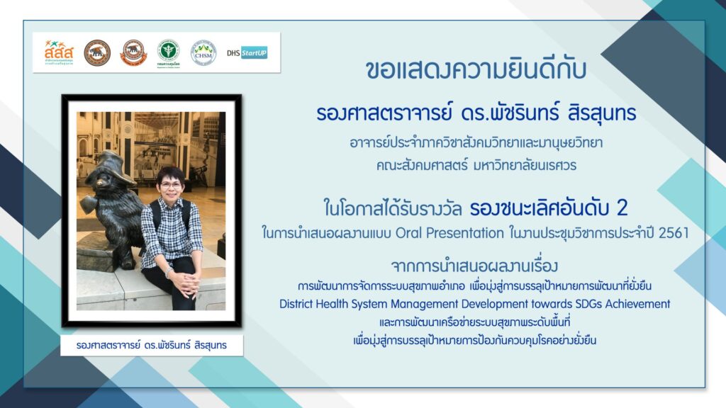 จากการนำเสนอผลงานเรื่อง การพัฒนาการจัดการระบบสุขภาพอำเภอ เพื่อมุ่งสู่การบรรลุเป้าหมายการพัฒนาที่ยั่งยืน