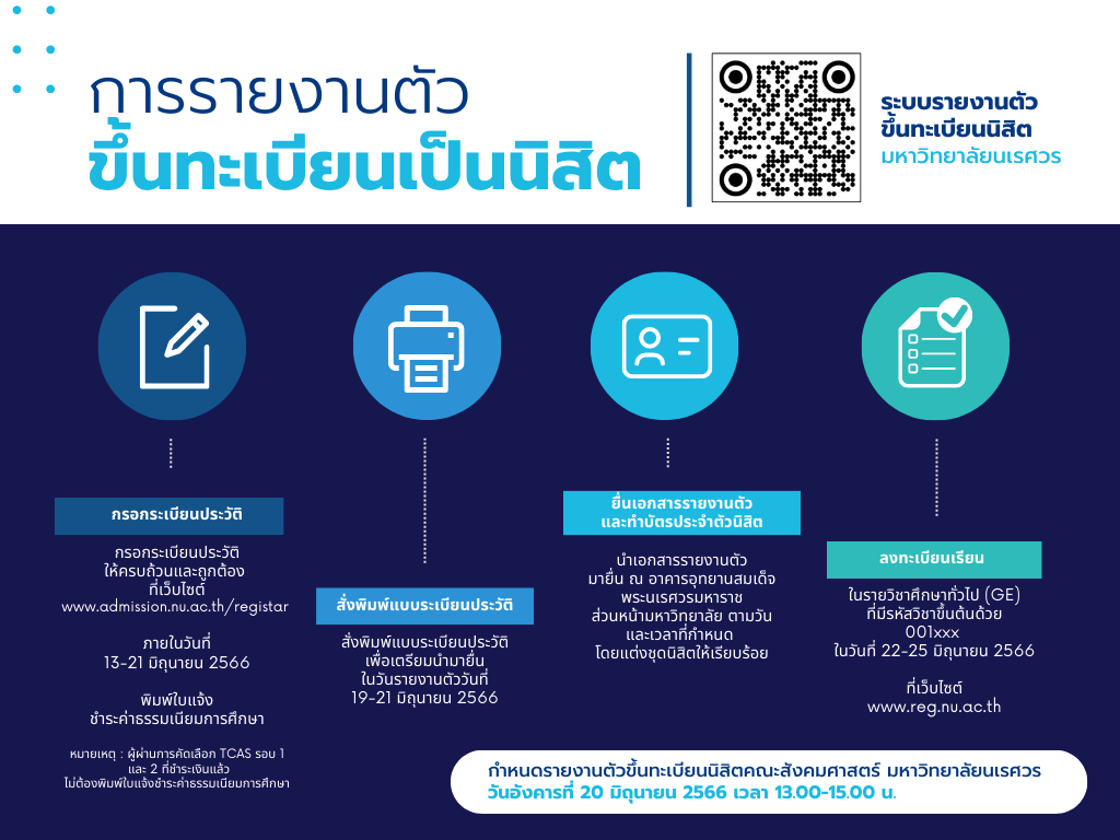 ขั้นตอนการรายงานตัวเพื่อขึ้นทะเบียนเป็นนิสิต คณะสังคมศาสตร์ มหาวิทยาลัยนเรศวร