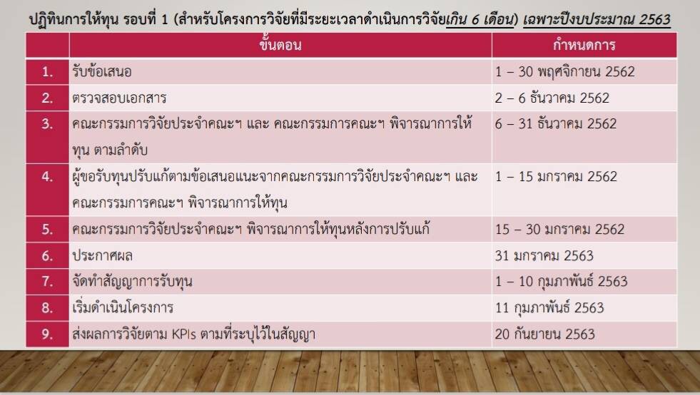 ข้อมูลการให้ทุนสำหรับโครงการวิจัยที่มีระยะเวลาดำเนินการวิจัยเกิน6เดือน ปีงบประมาณ 2563