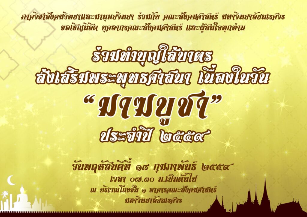 ร่วมทำบุญใส่บาตรส่งเสริมพระพุทธศาสนา เนื่องในวันมาฆบูชา ประจำปี ๒๕๕๙