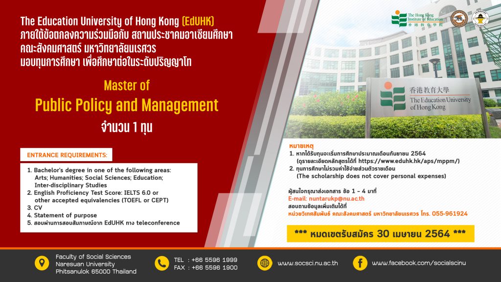 The Education University of Hong Kong (EdUHK) ภายใต้ข้อตกลงความร่วมมือกับ สถานประชาคมอาเซียนศึกษา คณะสังคมศาสตร์ มหาวิทยาลัยนเรศวร