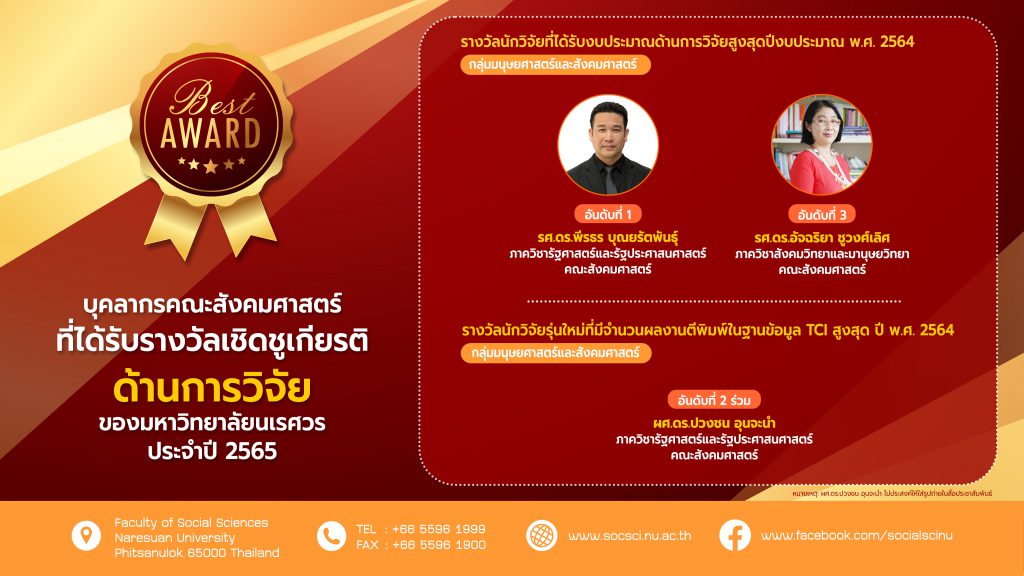 บุคลากรคณะสังคมศาสตร์ ที่ได้รับรางวัลเชิดชูเกียรติด้านการวิจัย