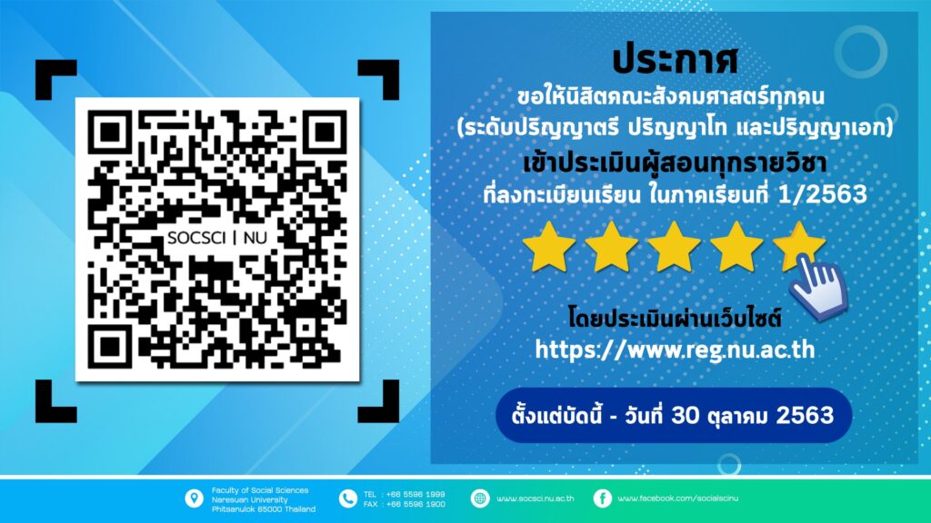 โดยประเมินผ่านเว็บไซต์ https://www.reg.nu.ac.th