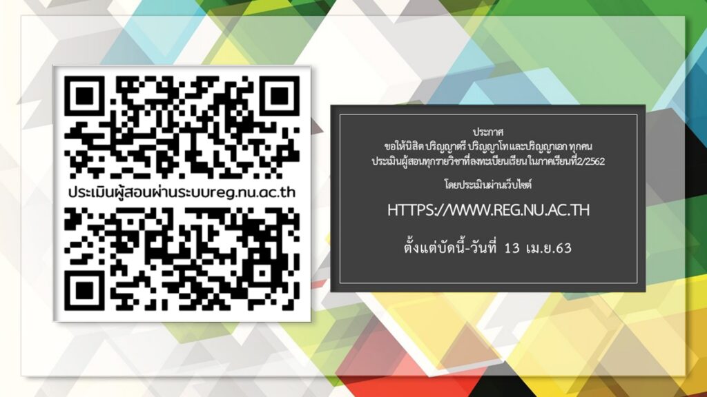 ประเมินอาจารย์ผู้สอน ในภาคเรียนที่ 2/2562 ตั้งแต่บัดนี้จนถึง 13 เมษายน 2563