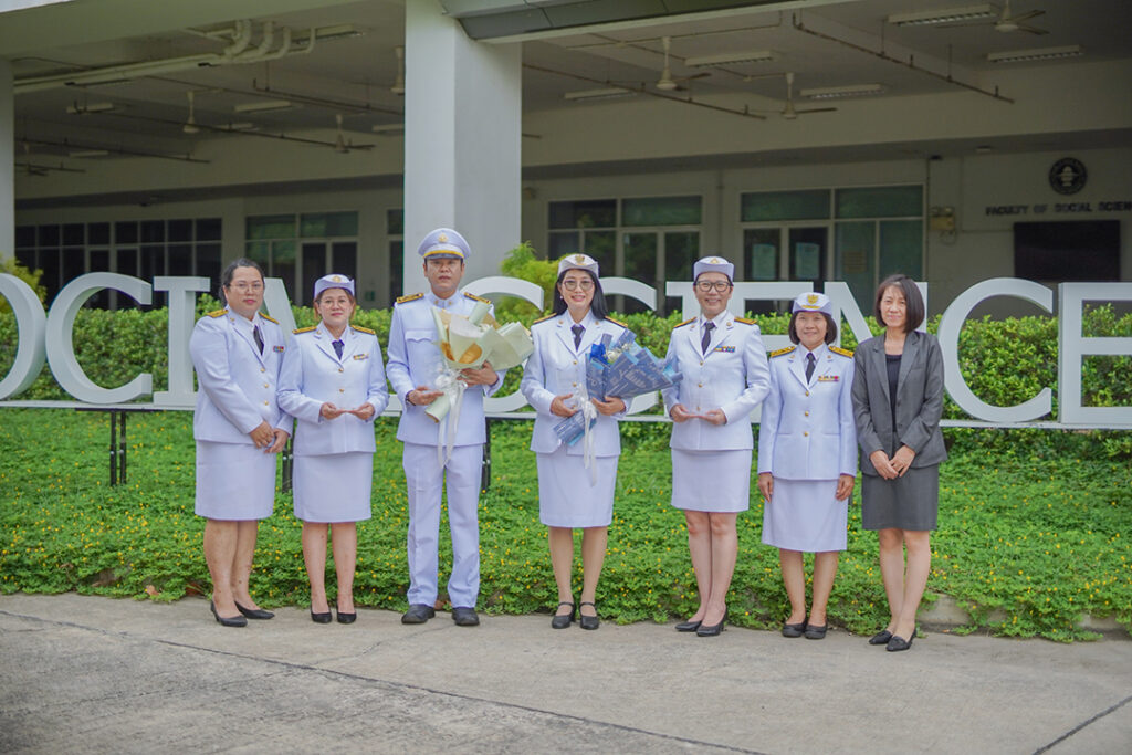 ผู้ช่วยศาสตราจารย์ ดร.นภิสา ไวฑูรเกียรติ คณบดีคณะสังคมศาสตร์ มหาวิทยาลัยนเรศวร พร้อมด้วยตัวแทนบุคลากรคณะสังคมศาสตร์ มหาวิทยาลัยนเรศวร ร่วมพิธีวางพานพุ่มเงิน พุ่มทอง ถวายราชสักการะและถวายราชสดุดี พระบรมราชานุสาวรีย์สมเด็จพระนเรศวรมหาราช เนื่องในวันคล้ายวันสถาปนามหาวิทยาลัยนเรศวร ครบรอบปีที่ 33 รวมถึงมอบช่อดอกไม้เพื่อแสดงความยินดีกับรองศาสตราจารย์ ดร.อัจฉริยา ชูวงษ์เลิศ อาจารย์ประจำภาควิชาสังคมวิทยาและมานุษยวิทยา