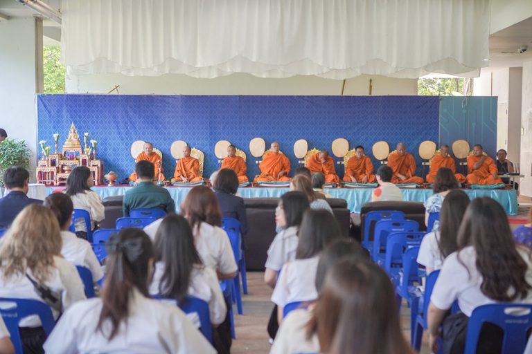 กิจกรรมเริ่มต้นด้วยพิธีทำบุญใส่บาตรข้าวสารอาหารแห้ง แด่พระภิกษุสงฆ์จำนวน 9 รูป จากวัดเสาหิน ตำบลวัดพริก อำเภอเมือง จังหวัดพิษณุโลก เป็นผู้รับบิณฑบาต เพื่อเป็นสิริมงคลแก่ผู้เข้าร่วมงาน หลังจากนั้นมีการเจริญพระพุทธมนต์เพื่อความเป็นสิริมงคลต่อบุคลากร นิสิต และการดำเนินงานด้านต่างๆ ของคณะสังคมศาสตร์ในอนาคต