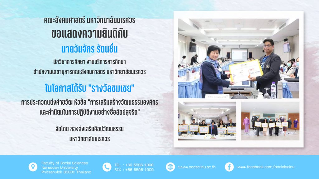 คณะสังคมศาสตร์ มหาวิทยาลัยนเรศวร ขอแสดงความยินดีกับ