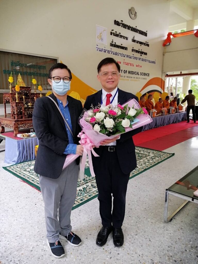 ผู้ช่วยศาสตราจารย์ ดร.อุด​มพร​ ธีระวิริยะกุล รองคณบดีฝ่ายวิชาการและพัฒนาคุณภาพการศึกษา คณะสังคมศาสตร์ มอบช่อดอกไม้ให้กับ รองศาสตราจารย์ ดร.สุขกิจ ยะโสธรศรีกุล คณบดีคณะวิทยาศาสตร์การแพทย์ เนื่องในโอกาสวันคล้ายวันสถาปนาคณะวิทยาศาสตร์การแพทย์ ครบรอบปีที่ 19 เมื่อวันอังคารที่ 22 กันยายน 2563 ที่ผ่านมา