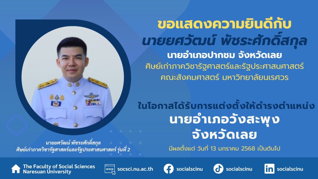 🎉 ขอแสดงความยินดีกับศิษย์เก่าคณะสังคมศาสตร์ มหาวิทยาลัยนเรศวร 🌟