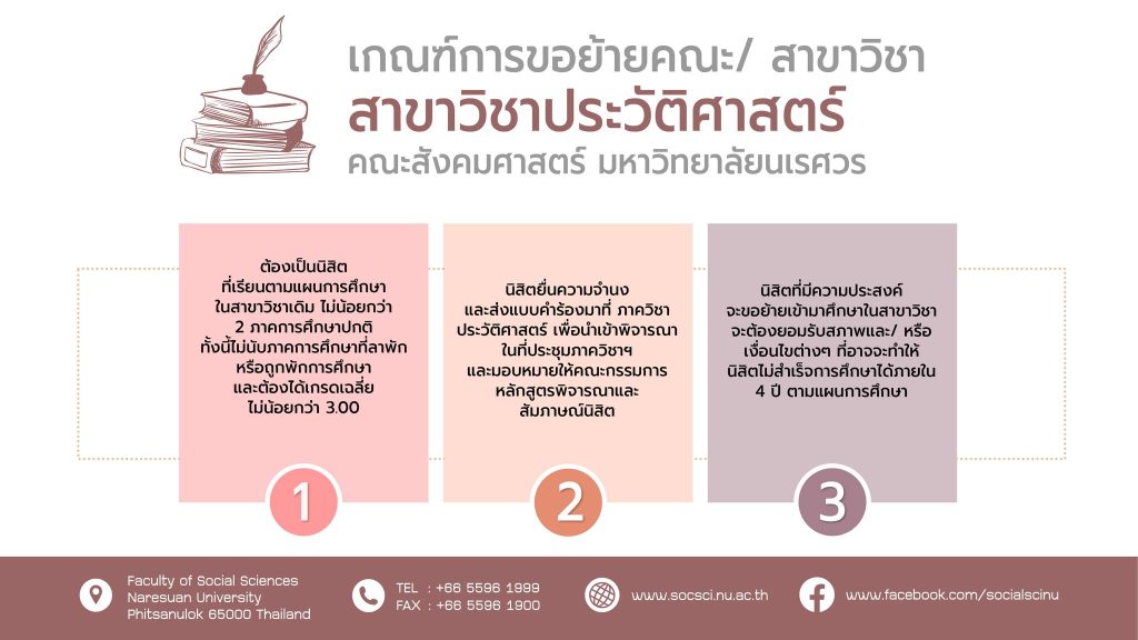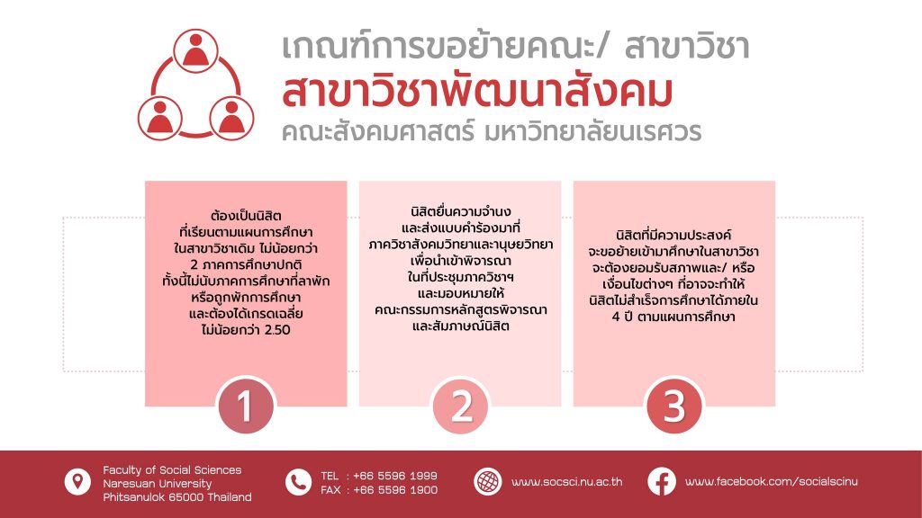 เกณฑ์การขอย้ายคณะ/ สาขาวิชา คณะสังคมศาสตร์ มหาวิทยาลัยนเรศวร