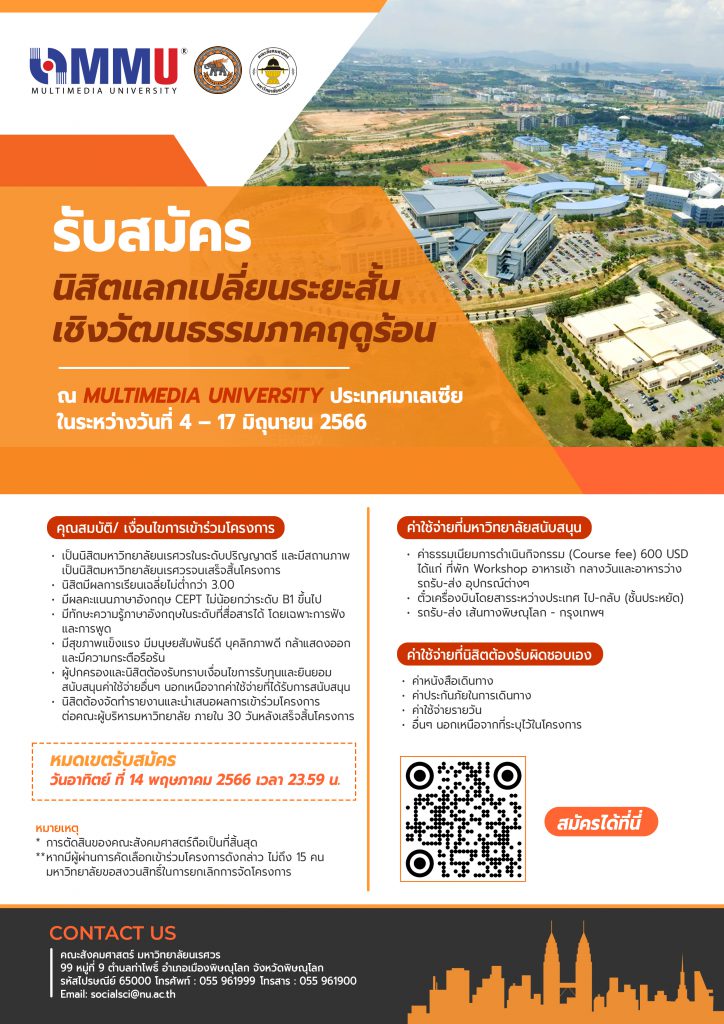 เปิดรับสมัคร “นิสิตแลกเปลี่ยนระยะสั้นเชิงวัฒนธรรมภาคฤดูร้อน” ณ Multimedia University ประเทศมาเลเซีย ในระหว่างวันที่ 4 – 17 มิถุนายน 2566