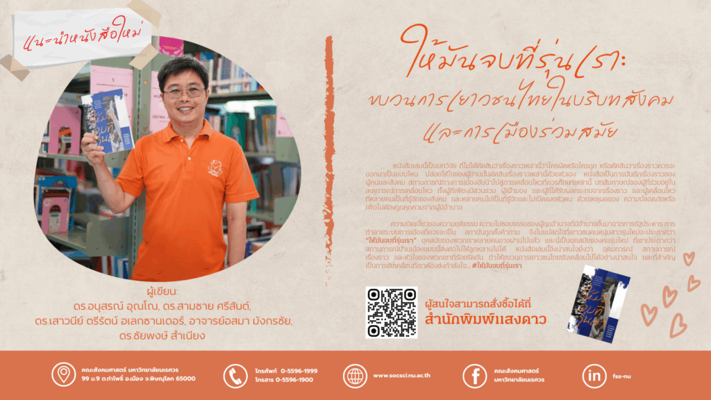 แนะนำหนังสือใหม่ ผลงานจากอาจารย์คณะสังคมศาสตร์ มหาวิทยาลัยนเรศวร “ให้มันจบที่รุ่นเรา: ขบวนการเยาวชนไทยในบริบทสังคมและการเมืองร่วมสมัย”