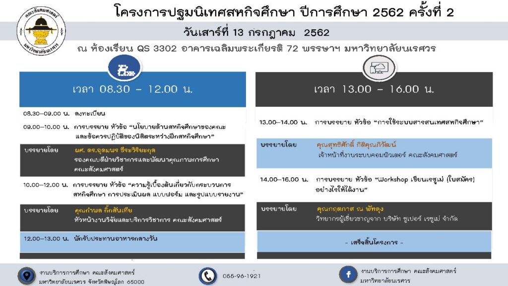 โครงการปฐมนิเทศสหกิจศึกษา ปีการศึกษา 2562 ครั้งที่ 2