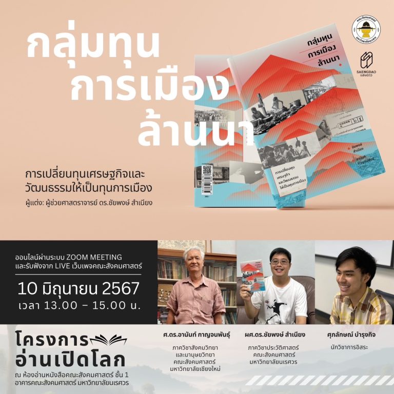 Topic: โครงการอ่านเปิดโลก (ครั้งที่ 6) หนังสือเรื่อง กลุ่มทุนการเมืองล้านนา: การเปลี่ยนทุนเศรษฐกิจ และวัฒนธรรมให้เป็นทุนการเมือง