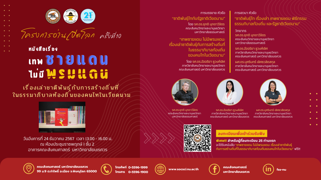 พิเศษ!!! สำหรับผู้ที่ลงทะเบียน 25 ท่านแรก จะได้รับหนังสือ “เทพชายแดน ไม่มีพรมแดน: เรื่องเล่าชาติพันธุ์กับการสร้างถิ่นที่ ในธรรมาภิบาลท้องถิ่นของคนไทในเวียดนาม” ฟรี!!!