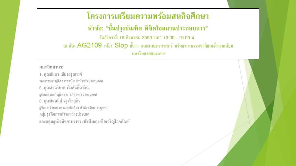 โครงการเตรียมความพร้อมสหกิจศึกษา: ปั้นปรุงบัณฑิต พิชิตใจสถานประกอบการ