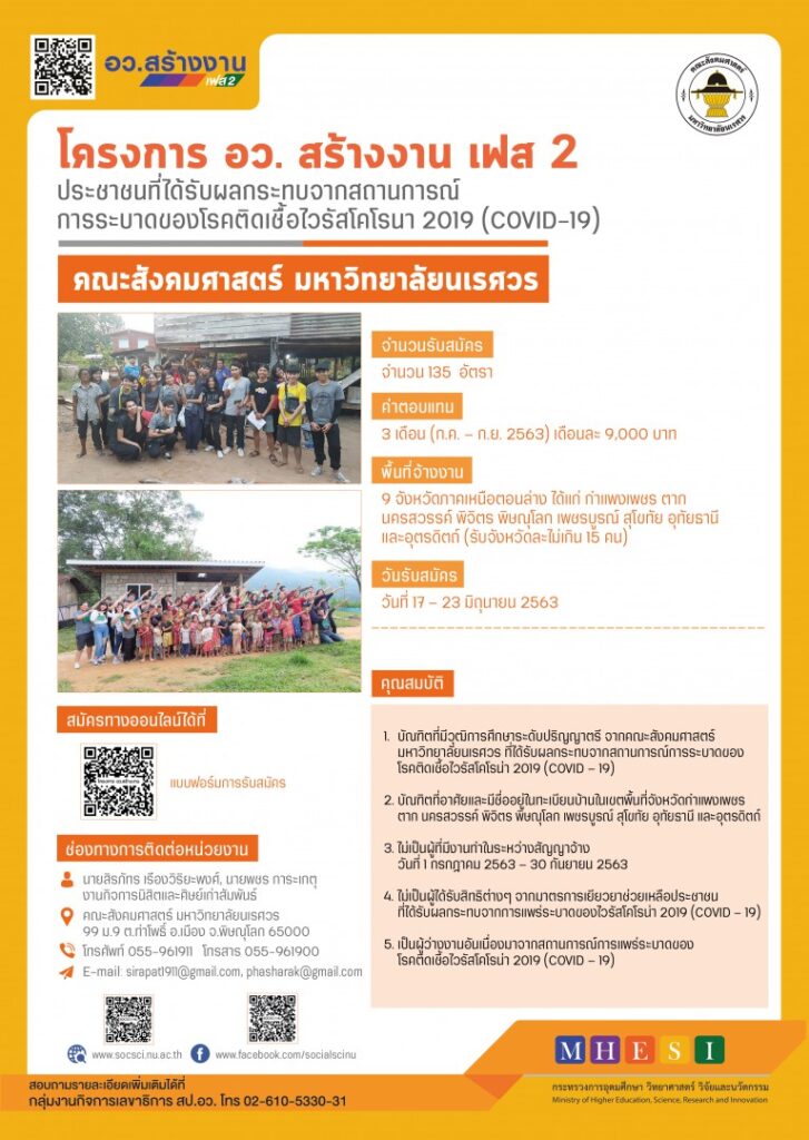 1.บัณฑิตที่มีวุฒิการศึกษาระดับปริญญาตรี จากคณะสังคมศาสตร์ มหาวิทยาลัยนเรศวร ที่ได้รับผลกระทบจากสถานการณ์การระบาดของโรคติดเชื้อไวรัสโคโรน่า 2019 (COVID – 19)
