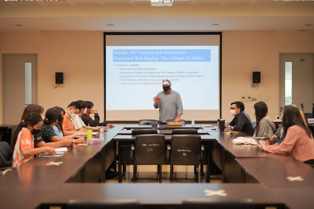 เมื่อวันจันทร์ที่ 6 มิถุนายน 2565 เวลา 10.00 น.ที่ผ่านมา คณะสังคมศาสตร์ มหาวิทยาลัยนเรศวร จัดโครงการ Fulbright Specialist Program: แบบจำลองสหประชาชาติ (Model United Nations – MUN) วิทยากรโดย Dr. Robert Alen Dayley, Professor of International Political Economy, The College of Idaho, USA โครงการนี้จัดขึ้นภายใต้รางวัล Fulbright Specialist Program จากสำนักงานกิจการการศึกษาและวัฒนธรรม กระทรวงการต่างประเทศสหรัฐอเมริกา เพื่อเป็นการเตรียมความพร้อมสู่ความเป็นนานาชาติ (Internationalization) ซึ่งจะเป็นประโยชน์แก่นิสิต และบุคลากรของมหาวิทยาลัยนเรศวร ซึ่งจัดขึ้นโดยมีวัตถุประสงค์ ดังนี้