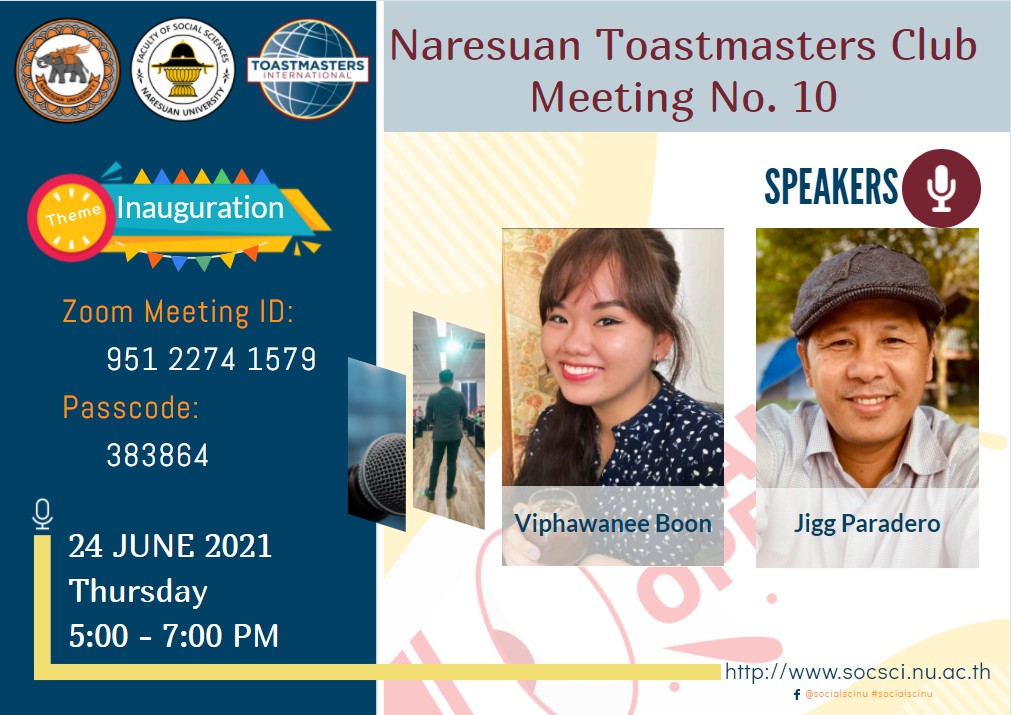 คณะสังคมศาสตร์ มหาวิทยาลัยนเรศวร ขอเชิญผู้สนใจทุกท่านร่วมโครงการ NU Toastmaster’s Club ครั้งที่ 10