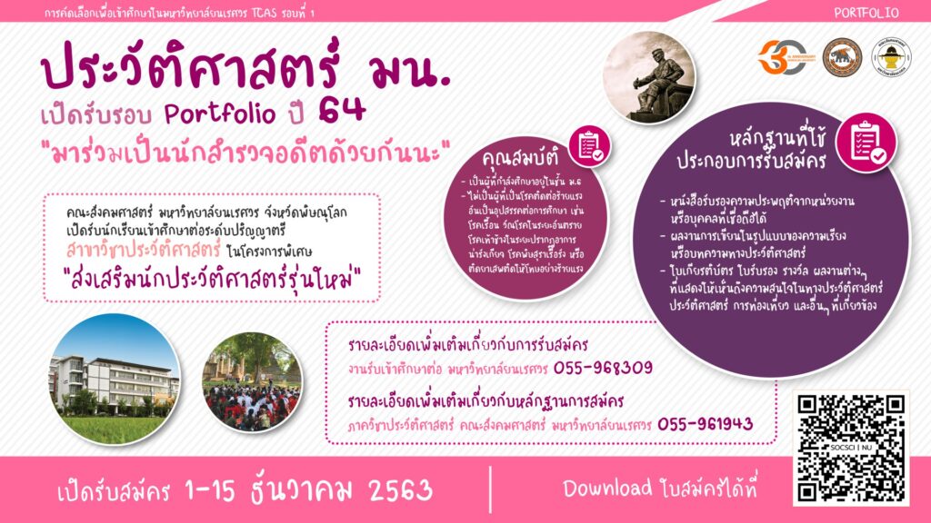 ประวัติศาสตร์ มน. เปิดรับรอบ Portfolio ปี 64