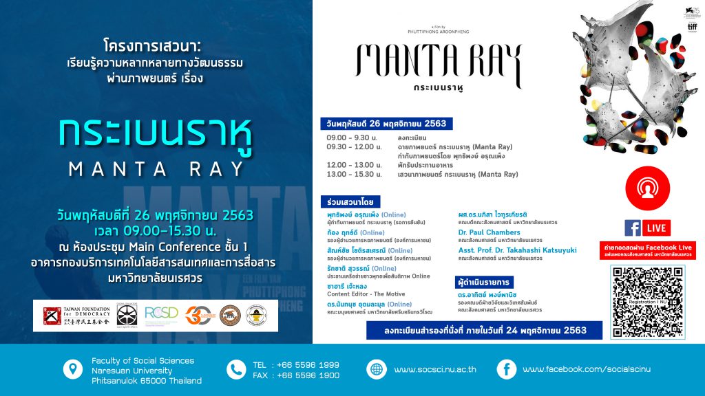 เรียนรู้ความหลากหลายทางวัฒนธรรมผ่านภาพยนตร์ เรื่อง กระเบนราหู (MANTA RAY)ร่วมเสวนาโดย