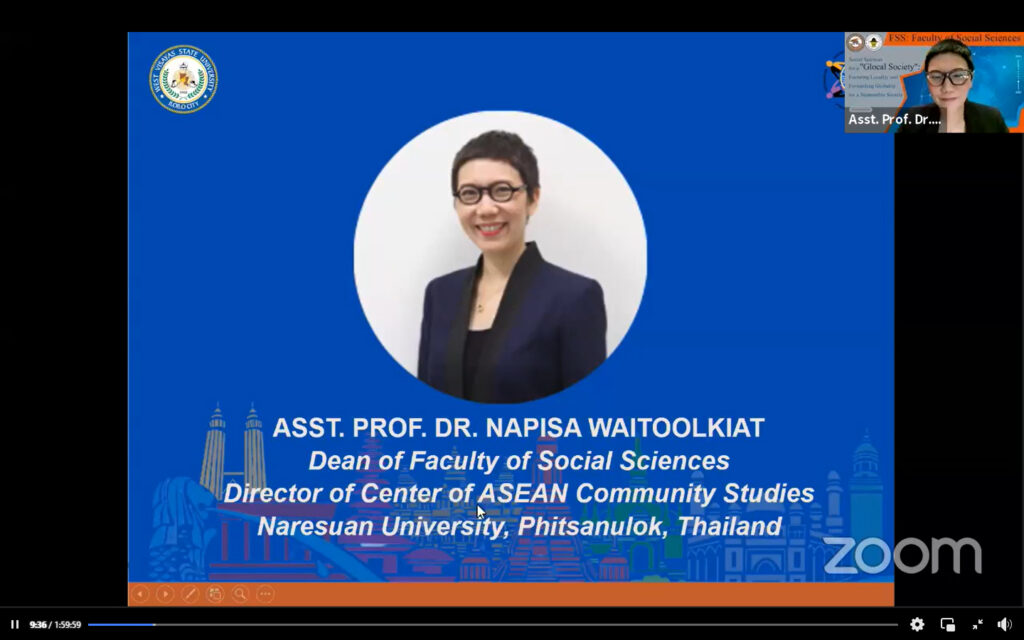 ผู้ช่วยศาสตราจารย์ ดร.นภิสา ไวฑูรเกียรติ คณบดีคณะสังคมศาสตร์ มหาวิทยาลัยนเรศวร ได้รับเกียรติร่วมอภิปรายแลกเปลี่ยนความคิดเห็น ในหัวข้อ “WOMEN IN THE ASEAN” ในงานฉลองครบ 54 ปี การก่อตั้งสมาคมประชาชาติแห่งเอเชียตะวันออกเฉียงใต้ Association of Southeast Asia Nations (ASEAN) ในธีม “We Care, We Prepare, We Prosper” โดยจัดขึ้นในวันศุกร์ที่ 27 สิงหาคม 2564 เวลา 13.00-15.00 น.ที่ผ่านมา ในระบบออนไลน์ผ่านโปรแกรม Zoom Cloud Meeting และ Facebook Live ซึ่งจัดโดย The West Visayas State University, Philippines