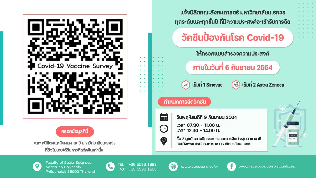 แจ้งนิสิตคณะสังคมศาสตร์ มหาวิทยาลัยนเรศวร