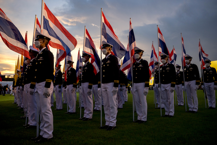 Members of the armed forces stand with flags of Thailand outside the Grand Palace during celebrations to mark King Maha Vajiralongkorn’s 70th birthday in Bangkok on 28 July 2022. Picture: Jack TAYLOR/AFP. : ISEAS Perspective 2022