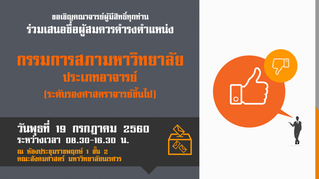 เสนอชื่อผู้สมควรดำรงตำแหน่งกรรมการสภามหาวิทยาลัย ประเภทอาจารย์ (ระดับรองศาสตราจารย์ขึ้นไป)