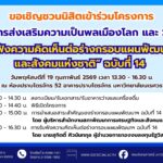 ขอเชิญชวนนิสิตมหาวิทยาลัยนเรศวร เข้าร่วมโครงการส่งเสริมความเป็นพลเมืองโลก และ SDGs ร่วมรับฟังการนำเสนอสาระสำคัญ และแสดงความคิดเห็นต่อ ร่างกรอบแผนพัฒนาเศรษฐกิจและสังคมแห่งชาติ ฉบับที่ 14 📢 ขอเชิญชวนนิสิตมหาวิทยาลัยนเรศวรเข้าร่วมโครงการส่งเสริมความเป็นพลเมืองโลก และ SDGsร่วมรับฟังการนำเสนอสาระสำคัญ และแสดงความคิดเห็นต่อร่างกรอบแผนพัฒนาเศรษฐกิจและสังคมแห่งชาติ ฉบับที่ 14 เวทีสำคัญที่เปิดโอกาสให้นิสิตได้เรียนรู้ทิศทางการพัฒนาประเทศพร้อมมีส่วนร่วมสะท้อนมุมมองของคนรุ่นใหม่ต่ออนาคตประเทศไทย 🌍 🗓 วันพฤหัสบดีที่ 19 กุมภาพันธ์ 2569⏰ เวลา 13.30 – 16.30 น.📍 ห้องปราบไตรจักร 52 อาคารปราบไตรจักร มหาวิทยาลัยนเรศวร ลงทะเบียนได้ที่ https://shorturl.nu.ac.th/jbelgf ✨ เสียงของนิสิตคือพลังสำคัญในการขับเคลื่อนสังคม✨ เปิดพื้นที่แห่งการเรียนรู้ แลกเปลี่ยน และมีส่วนร่วมอย่างสร้างสรรค์