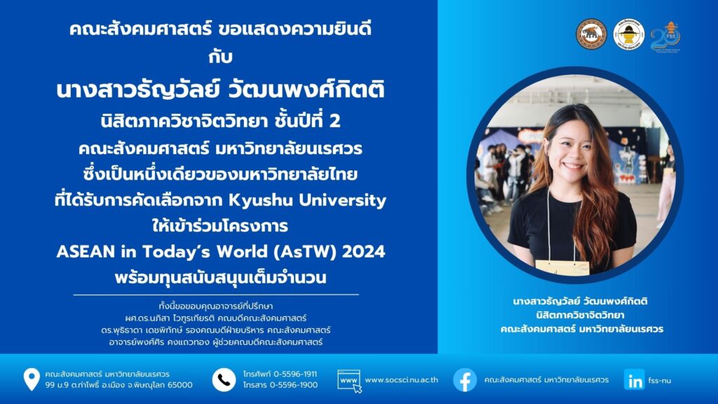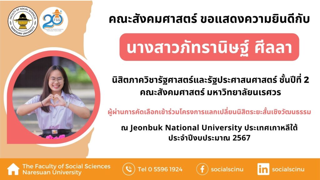 รายชื่อผู้มีสิทธิ์เข้ารับการสอบคัดเลือกเพื่อบรรจุและแต่งตั้งเป็นพนักงานมหาวิทยาลัย ตำแหน่ง อาจารย์ สังกัดภาควิชาจิตวิทยา สังกัดคณะสังคมศาสตร์ มหาวิทยาลัยนเรศวร