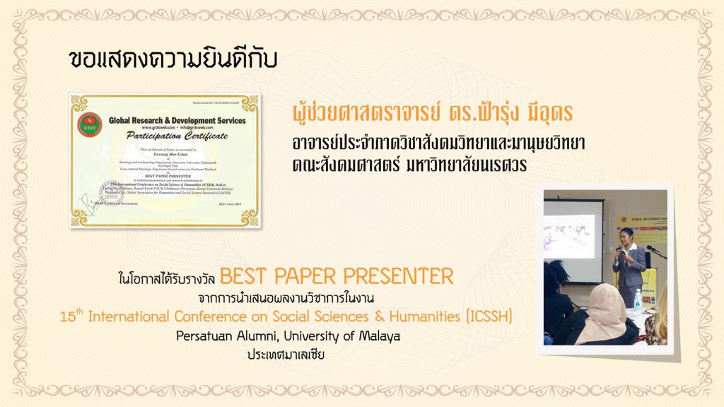 ในโอกาสได้รับรางวัล BEST PAPER PRESENTER