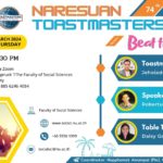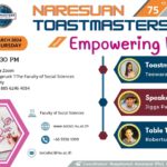 On-site attendees, please “Register here!!!” SOCSCI@NU-Thailand is inviting you to Naresuan Toastmasters Club’s 75th meetingTheme: “Empowering Women!”Time: Thursday 28 March 2024, From 5.30 PM to 6.30 PMHybrid/Zoom Meetingvenue : Faculty of Social Sciences | Naresuan UniversityMeeting ID: 885 6246 4054Passcode: Read more