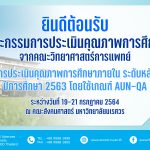 ยินดีต้อนรับคณะกรรมการประเมินคุณภาพการศึกษา จากคณะวิทยาศาสตร์การแพทย์ โครงการประเมินคุณภาพการศึกษาภายใน ระดับหลักสูตร ปีการศึกษา 2563 โดยใช้เกณฑ์ AUN-QA ระหว่างวันที่ 19-21 กรกฎาคม 2564 ณ คณะสังคมศาสตร์ มหาวิทยาลัยนเรศวร ———————————————————- ขอเชิญผู้สนใจทุกท่านเข้าร่วมพิธีเปิด โครงการประเมินคุณภาพการศึกษาภายใน ระดับหลักสูตร ปีการศึกษา 2563 โดยใช้เกณฑ์ AUN-QA (รูปแบบออนไลน์ ผ่านโปรแกรม Microsoft Teams) วันจันทร์ที่ 19 กรกฎาคม 2564 เวลา 09.00 น. เข้าร่วมพิธีเปิดออนไลน์ที่นี่