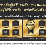 รายชื่อผู้ได้รับรางวัล “The Reader Awards” และผู้ได้รับรางวัล “แฟนพันธุ์แท้ Library” โครงการคนบ้า เสวนา กาแฟ หนังสือ ครั้งที่ 5 ตอน “ขวัญใจ Library” ประจำปีการศึกษา 2561 รางวัล The Reader Awards 1. ประเภทนิสิตระดับปริญญาตรี นางสาวชาริณีย์ มุทขอนแก่น สังกัดคณะสังคมศาสตร์ 2. ประเภทนิสิตระดับบัณฑิตศึกษา นายทศพล ชิ้นจอหอ สังกัดบัณฑิตวิทยาลัย 3. ประเภทบุคลากร นางเรณุกา หนูสอน สังกัดคณะสังคมศาสตร์ 4. ประเภทอาจารย์ ดร.บุศรินทร์ Read more