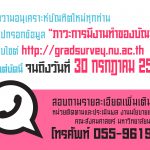 ขอความร่วมมือจากบัณฑิตทุกท่าน กรอกแบบสำรวจภาวะการมีงานทำของบัณฑิต *** ผ่านทางเว็บไซต์ http://gradsurvey.nu.ac.th *** เมื่อทำการกรอกแบบสำรวจเสร็จสิ้นแล้ว ท่านจะต้องนำ Print Out ส่งให้กับเจ้าหน้าที่ที่รับรายงานตัว ในวันเสาร์ที่ 29 กรกฎาคม 2560 ณ จุดรับรายงานตัวตามที่มหาวิทยาลัยกำหนด สอบถามได้ที่ งานนโยบายและแผน คณะสังคมศาสตร์ มหาวิทยาลัยนเรศวร โทร: 055-961922