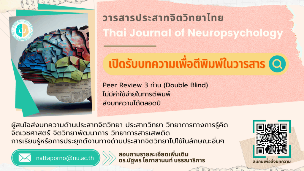 เปิดรับบทความเพื่อตีพิมพ์ในวารสารประสาทจิตวิทยาไทย