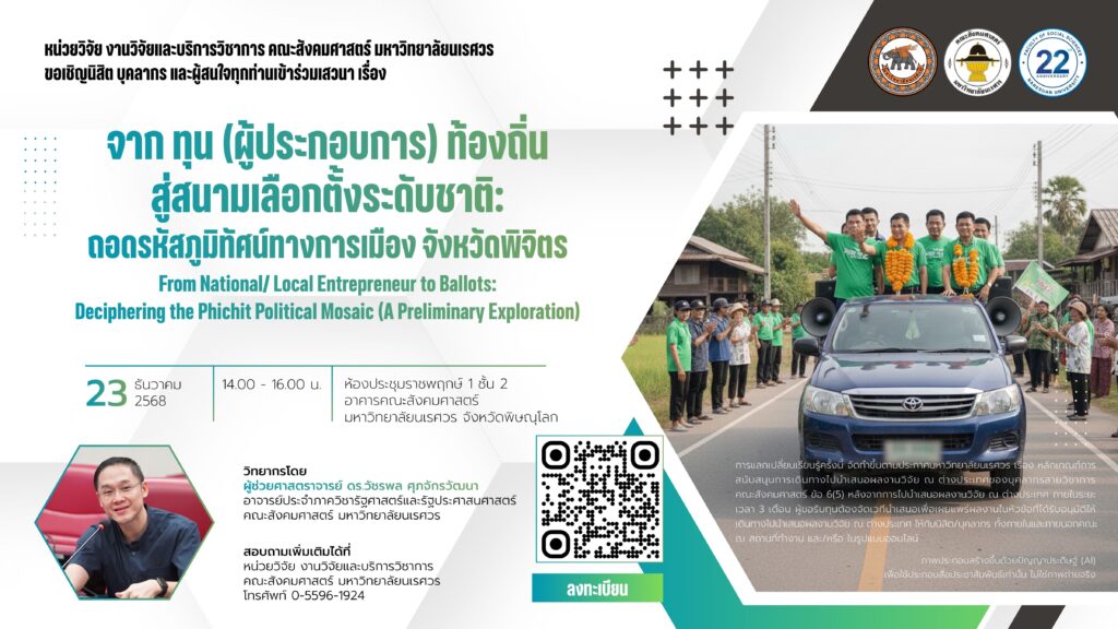 “จาก ทุน (ผู้ประกอบการ) ท้องถิ่น สู่สนามเลือกตั้งระดับชาติ: ถอดรหัสภูมิทัศน์ทางการเมือง จังหวัดพิจิตร”