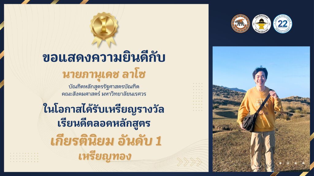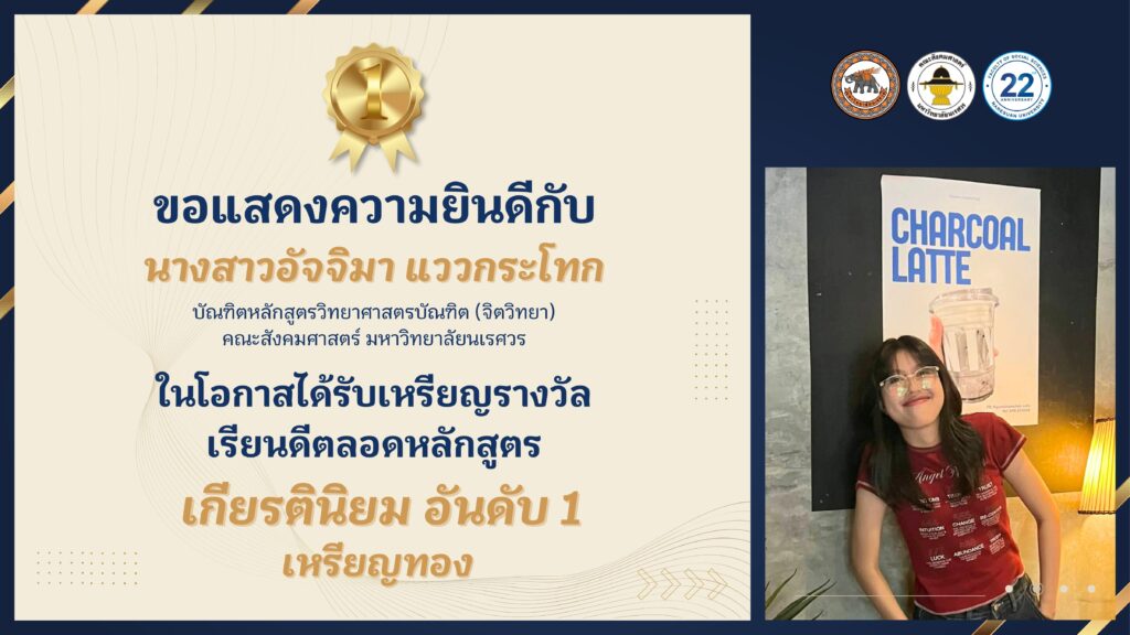 ในโอกาสได้รับเหรียญรางวัลเรียนดีตลอดหลักสูตรเกียรตินิยม อันดับ 1เหรียญทอง
